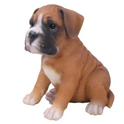 Boxer Puppy figurine is an adorable life like replica of the Boxer puppy. Made with polyresin this statue is good for both indoors and outdoors. Makes an adorable gift for dog lovers. Decorate your home or garden with this adorable Boxer Puppy and create an inviting ambiance of joy and charm. Let your home or garden become entranced with this heartwarming and lovely puppy statue. The detailed design adds a little bit of life and joy to any garden