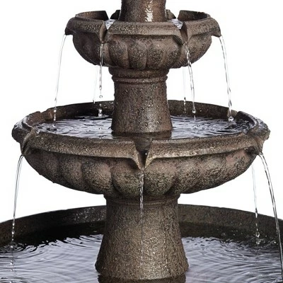 - Three-tier outdoor floor water fountain with energy-efficient LED lights. From the John Timberland brand of garden fountains.