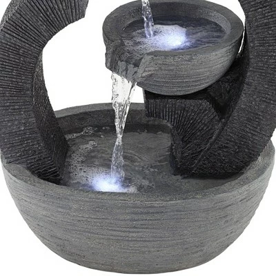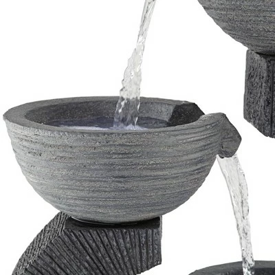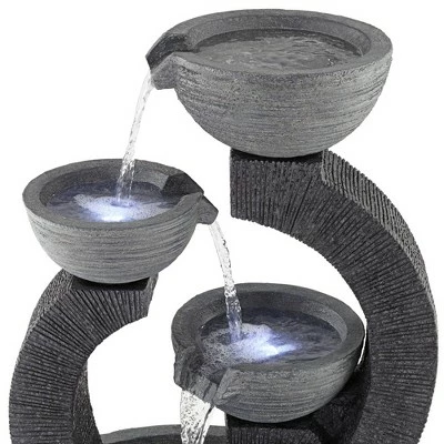 Designed with a blend of art and architecture, this LED lighted floor water fountain brings a commanding accent to any space. With energy-efficient LED lighting, this fountain by John Timberland® goes above and beyond with mood-enhancing illumination for after-dark use. A blend of gray finishes accentuates the exotic silhouette of pots, bowls, and curved supports.