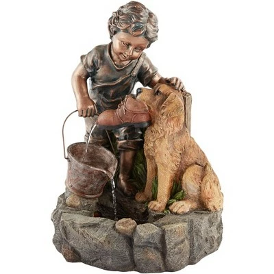 - Boy and Dog garden fountain by John Timberland. Can also be used indoors.