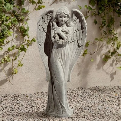 This Standing Angel statue is a lovely symbol of peace and tranquility for any indoor or outdoor setting. The design is made from cast ceramic and has highly detailed features and angel wings. The fax stone finish offers a beautiful look for a garden or patio setting, or you can place indoors as part of your room decor. A design from the John Timberland brand of outdoor decor.