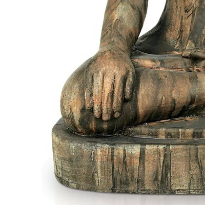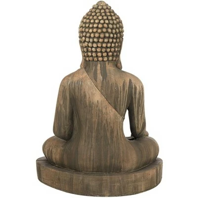 Garden statues are an easy way to add a new dimension to your outdoor space. The magnificent form of this sitting Buddha outdoor statue, cast from low-maintenance resin, creates a peaceful upgrade to your garden decor. The faux sandstone finish has an organic, weathered look that can blend into any natural setting, or display indoors for a wonderful home accent piece.
