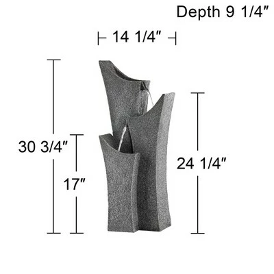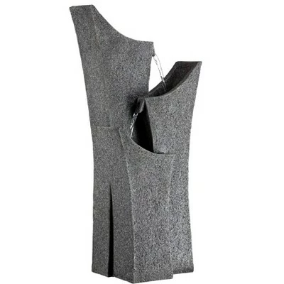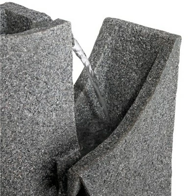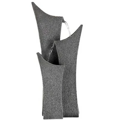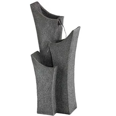 Add a touch of tranquility to modern decor with this gray stone fountain. It features a striking, nature inspired design with three elegantly arched tiers. A submergible pump ensures quiet operation, while water flows, bringing serenity to any room.