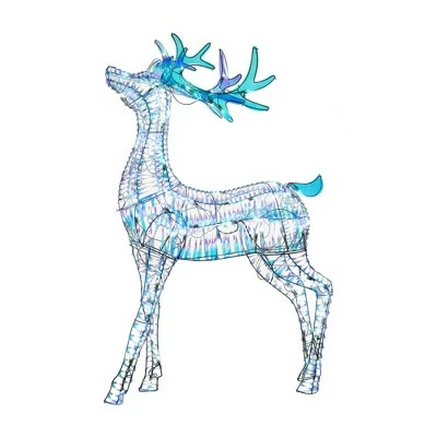 Upgrade your holiday decor this winter season with the National Tree Company Iridescent Lights Santa’s Sleigh and Reindeer. This Santa’s sleigh decoration is made with a translucent mylar material wrapped around a wireframe creating a strong and durable holiday trimming. The iridescent feature of this material makes it look like the sleigh is changing colors from every viewing angle. The sleigh is pre-lit with 105 cool white LED lights that make this decoration sparkle and shine. The lights are long-lasting slow-burn bulbs so you can be sure to use this decoration year after year. This reindeer figure is made with a translucent mylar material wrapped around a wireframe creating a strong and durable holiday trimming. The iridescent feature of this material makes it look like the reindeer is changing colors from every viewing angle. The reindeer is pre-lit with 105 cool white LED lights that make this decoration sparkle and shine. Ground stakes are included if you choose to display your snowman outside. The decorations are powered by a plug-in power cord and can be used for displays anywhere.Make sure your decorations sparkle as bright as your holiday spirit with the National Tree Company Lights Santa’s Sleigh and Reindeer.