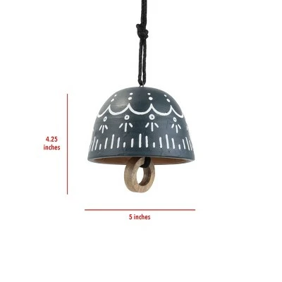 - Style: This decorative bell is made from natural terracotta with a deep navy blue and white painted pattern with a wooden bell. With its charming style, this decorative accent will fit perfectly with your favorite décor.