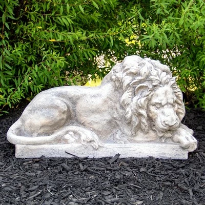 This incredible lion statue makes a bold statement in any outdoor area. Intricately cast with the finest details, the regal creature is a must-have. Perfect in a flower bed or on a pedestal for maximum effect.Medium size outdoor lion statueIntricate details from skilled castingMade to look like real stoneLion is hollow Dimensions: 11.25″H x 22.5″L x 8.25″WMaterial(s): polyresin