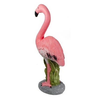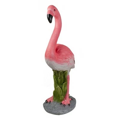Add a touch of the tropics to your outdoor living space with this standing flamingo! He symbolizes summer and hot weather and would love to come live on your porch or patio. Representing balance and family, this flamingo is ready to help guide you in that direction. Features:Pink flamingo outdoor garden statueBright pink body and feetFeet have black clawsStanding in green weeds