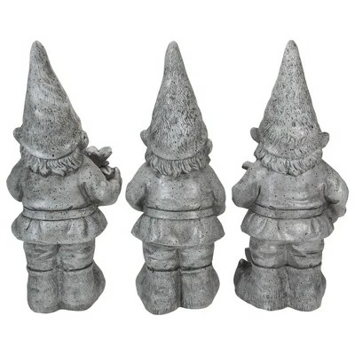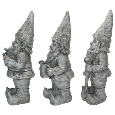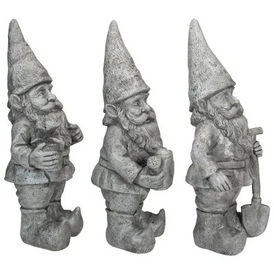 Gnomes are best known for guarding Earthly treasures and providing good luck, making them perfect for protecting your garden! This trio is ready to help with a plant, shovel and watering can. Made from durable materials, these gnomes will be tending your garden for years and years.Trio of gardening gnomes outdoor statuesMade to look like real stoneSet can not be split upDimensions: 13.25″ x 5.25″W x 6″DMaterial(s): polyresinNote:Set includes 1 of each item shown