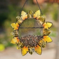 Evergreen Flag Beautiful Sunflower Metal and Glass Bird Feeder – 11 x 19 x 3 Inches