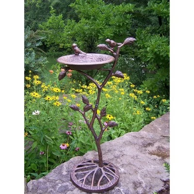 Add whimsy, personality and a landing place for birds to your garden or backyard with the Meadow Birdbath. A small bird is already perched on the side of the bowl, welcoming live birds to join it for a sip of water. The powder-coated birdbath stands up to all sorts of wear and weather, so cardinals and bluebirds alike can enjoy it for years to come. Our branch style bird bath in bronze is the perfect addition to any setting, bringing beauty and style to your outdoor patio, backyard, or garden. With a rust-free cast aluminum frame and base this bird bath will last for many years in all weather conditions. This piece also features a powder coated finish that is very durable for the outdoor setting. Minimal assembly is needed for this item, making it a perfect gift for any friends or family.