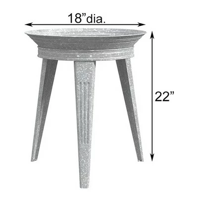 Bring a sense of tranquility and peace to your garden and outdoor spaces with this Galvanized Vintage Style Bird Bath by Panacea.This metal bird bath gives a rustic feel to your yard or landscaping with a gray galvanized finish. An 18-inch diameter basin attaches to the included, metal support ring, and the sides of the bowl taper inward to evoke a bucket. The 2-inch depth of the basin allows both small and larger birds to bathe, and the rolled rim on the top offers plenty of perching area. Attach the (3) 19-inch tall legs to the support ring to showcase this unit on your patio or deck. Included anchors install through holes in each leg to secure them into the soil for a different look. With sturdy, metal construction, this bird bath is sure to remain durable for many seasons.Bring a touch of rustic peace to your outdoor spaces with this Galvanized Metal Bird Bath by Panacea.
