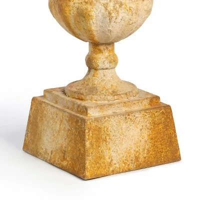 Inspired by an 19th century design, this impressive fluted metal urn with pedestal is 33″ high and has a beautiful rusted aged patina. Perfect in pairs on either side of an entry way. Also comes in a larger 33″ size.