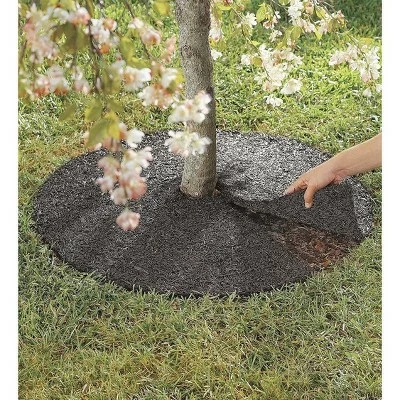 Our Permanent Mulch Recycled Rubber Tree Ring is a mulch look-alike that takes the work out of landscaping. Perma Mulch deters weed growth, but allows air, nutrients and water to pass through. This textured fake mulch tree ring blends beautifully with your landscape. You’ll love the manicured look it gives your yard. Plus, Permanent Mulch lasts for years, so there’s no need to buy, haul, shovel and rake bulk mulch every spring. Recycled tires are shredded and formed into lightweight, long-lasting circles for specimen shrubs, young trees and more. It’s so easy to use! Just lay it down and you’re done. You can cut it to fit around growing trees, posts or poles. Unlike bulk mulch, Perma Mulch Tree Ring is scatter-proof and stays put. It won’t blow away during fall leaf cleanup, pets (and other creatures) can’t kick it up, and it always looks neat and tidy. Permanent Mulch is a practical solution to many yard and garden problems. Not only does it stop weeds and reduce yard work, it looks great and is easy to use. Try our long-lasting, no-maintenance Permanent Mulch today!