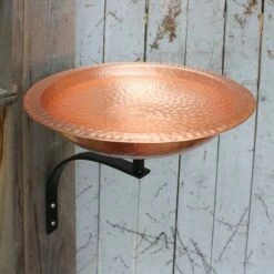 12.2" Hammered Solid Copper Birdbath with Wall Mount Bracket Satin Copper – ACHLA Designs