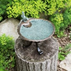 10.75" Tall Scallop Shell Birdbath with Tripod Stand Antique Brass Plated – Achla Designs