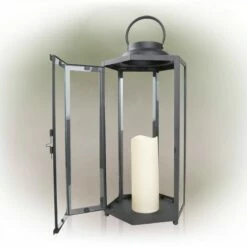 Alpine Corporation Alpine 18" Hexagonal Candlelit Iron Lantern with LED Lights Black/Warm White