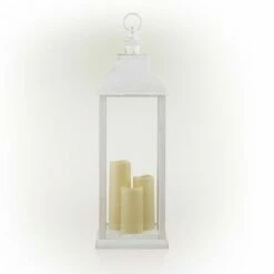 Alpine Corporation Alpine 14" Hexagonal Candlelit Iron Lantern with LED Lights Black/White