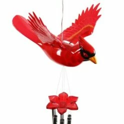 9.25" Plastic and Metal Solar Cardinal Fluttering Wings Wind Chime Red – Exhart