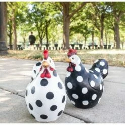 8.46″ Resin Polka Dot Garden Hen Statue – Exhart Black/white