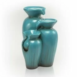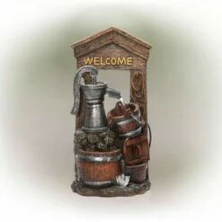 13.75" Indoor/Outdoor Restore Resin Fountain with Water Pump and LED Light Gray – Alfresco Home LLC