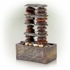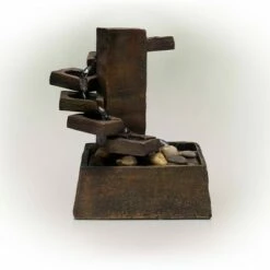 Alpine Corporation 22" Resin Outdoor 4-Teir Rainforest Log Waterfall Fountain with LED Lights Brown