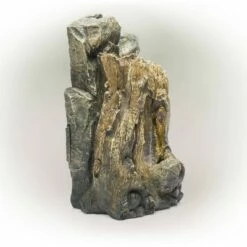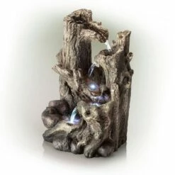 Alpine Corporation 22" Resin Rainforest Waterfall Tree Trunk Fountain with LED Lights Beige/Brown