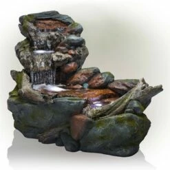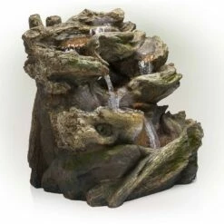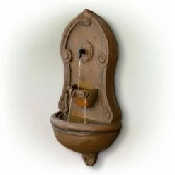 Alpine Corporation 32" Resin Classical Walled Fountain with Lion Head and LED Lights Off-White