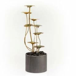 Alpine Corporation 27" Resin Indoor/Outdoor Girl and Boy Drinking Water Fountain Yard Décor Bronze