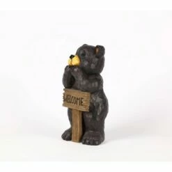 HI-LINE GIFT LTD 17.25" Polyresin Bear Leaning on Welcome Sign Outdoor Statue Black – Hi-Line Gift