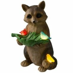 Wind & Weather Raccoon With Leaf Bird Feeder with Solar Lighted Birds