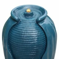 31.89″ Glazed Vase Outdoor Floor Fountain with LED Light – Teamson Home Blue