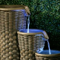 27.75" Outdoor Everwoven Fountain with Water Pump and LED Light Gray – Alfresco Home LLC