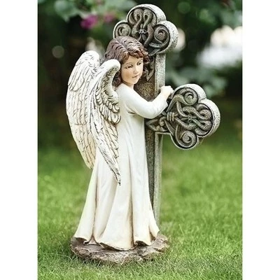 Versatile in its simplicity, this angel facing cross figurine is a perfect addition for your outdoor decor. Cast a stunning glow to your garden with this piece of elegance that overwhelms with its lifelike beauty. Latch on to this appealing garden decor to invigorate your holiday festivities.Product Features:White serene angel outdoor garden statueAngel with her arms wrapped around a decorative crossMeticulously crafted by master artisans, with great attention to color and detail Recommended for both indoor or outdoor useDimensions: 11.75″H x 7.25″W x 4.25″DMaterial(s): resin/stone mix