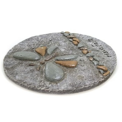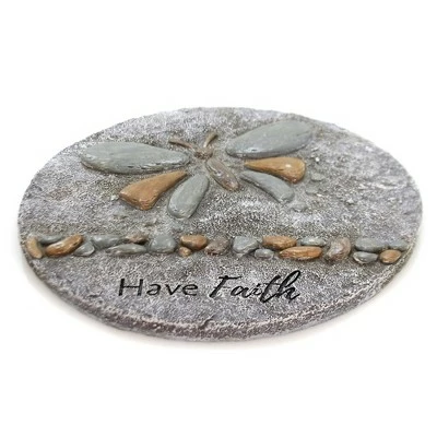 A Butterfly In Colors Of Gray And Brown Sits Atop A Textured Round Stepping Stone. “Have Faith” Is Carved Into The Bottom Of The Stone. New. Comes Packaged In A Box.. Measurements 11.5 In H X 11.5 In W X .5 In D. . Made Of Polyresin. No Assembly Required. Indoor Or Outdoor Use. Imported