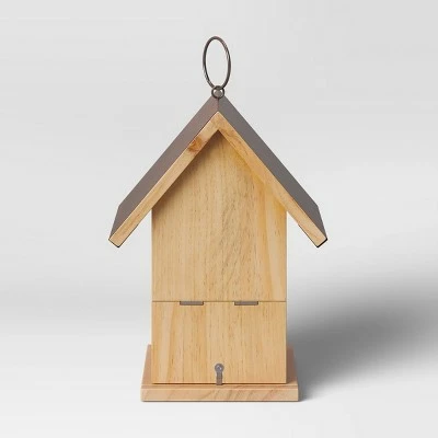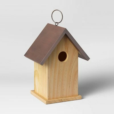 Add timeless beauty to your outdoor space with this Wood and Iron Bird House from Smith & Hawken™. Crafted from rust-resistant iron material that can withstand the outdoor elements, this bird house is designed to be a focal point for any flower garden, yard or nature sanctuary. The house features a hole at the front for cute detail along with a door knocker detail metal ring included for easy hanging. Create your own backyard bird habitat with this wooden bird house.