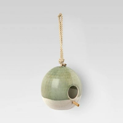 Add an adorable accent to your yard or patio with this Stoneware with Reactive Glaze Birdhouse from Smith & Hawken™. This decorative and functional birdhouse will complement any outdoor décor theme, but other stoneware pieces will help you create a cohesive look. This round birdhouse with small opening for the birds to enter and leave has a reactive glaze for a pottery look. The attached rope loop is the perfect way to hang this birdhouse from a hook, nail or tree branch.