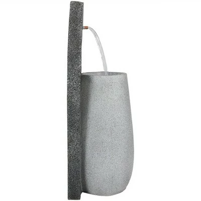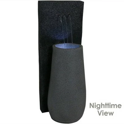 With its sleek, modern design and waterfall-like sounds this outdoor fountain is sure to create a relaxing ambiance for the patio, yard, or garden. This stunning outdoor fountain features three separate streams of cascading water that fall from the top, into the white oval bowl below, where it recirculates back to the top. The LED light located in the oval bowl will keep this decor piece illuminated all through the night, giving any outdoor space a peaceful flow. This fountain is easy to use, once assembled and filled, simply plug it into a standard electrical outlet when its ready to run. Images include product in nighttime environment.
