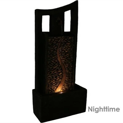 Add contemporary European elegance to any patio with this outdoor electric fountain. The LED lights at the bottom of the fountain highlight the beautiful cobblestone road mosaic. Constructed of durable and lightweight polyresin and fiberglass, this fountain is easy to clean and move. Small details like the copper-colored faucet and meticulously recreated stones make this fountain a beautiful focal point for any backyard. Everything needed to set up this product is in the box, including the fountain, LED light and submersible electric JR-600LV pump. The pump has a 70-inch long power cord, providing some flexibility for placement of the fountain. Images include product in nighttime environment.