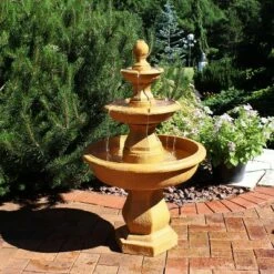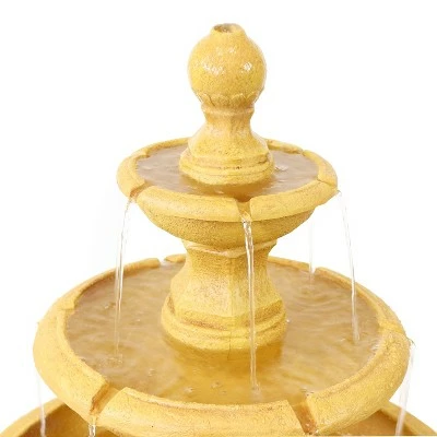 Let this outdoor electric fountain liven up any outdoor space. The vibrant color gives a tropical feel to any environment whether placed in the garden, patio, deck, or in the front yard. The fountain features three tiers, the larger lower tier has a diameter of 23″ and is 5″ deep. The middle tier has a 14″ diameter and is 2.5″ deep, while the top tier has an 8″ diameter and is 2″ deep. Plus, the gentle sounds of the flowing water down the three tiers and recirculating back to the top is sure to add a relaxing ambiance to any outdoor space.
