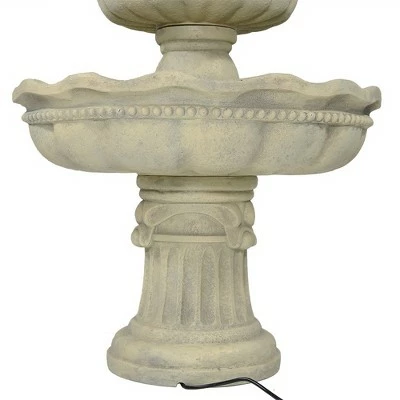 Add classic charm and elegance to any garden, patio, or yard with this beautiful electric fountain. The three tier masterpiece will be a great addition to any outdoor space. Plus, the fountain stands over 4′ so it is sure to impress family and friends as it adds soothing running water sounds to the atmosphere. It also features an electric pump that plugs into a standard electric outlet that allows the water to recirculate from the top tier through the bottom basin and back.