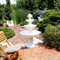 This stunning outdoor fountain is made from a durable fiberglass material and it is the perfect focal piece that will add beauty to any deck, patio, or garden. Water flows out the fruit top and glides down each tier as the previous one fills, creating a soothing waterfall centerpiece. Once water reaches the basin, an electric recirculating pump brings it back to the top with no plumbing needed.