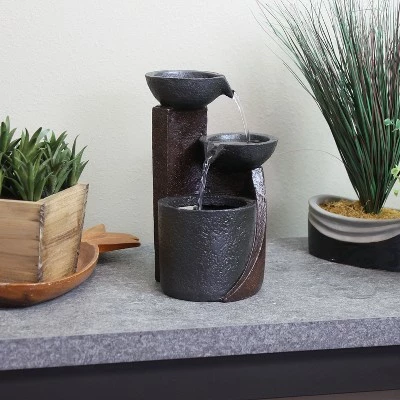 Bring a modern touch to any personal space in the home or office with the Descending Bowls Indoor Tabletop Water Fountain from Sunnydaze Decor. Constructed of durable and easy-to-maintain resin, this indoor fountain has the appearance of rustic, weathered bowls on pedestals. Water gently flows from tier to tier of the contemporary-styled bowls and cascades into the basin below. Once it reaches the basin, it is recirculated through the fountain via the electric submersible pump. This pump ensures that no complicated plumbing or installation is necessary to put this indoor water feature together.