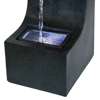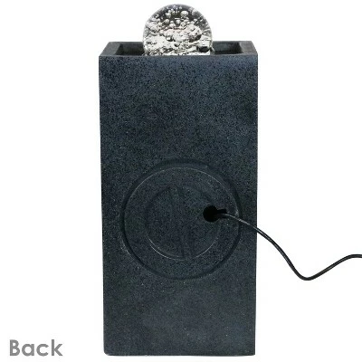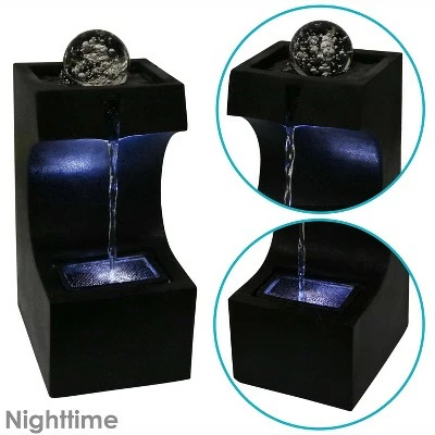 This contemporary little water fountain will add soothing ambiance to any indoor space. It’s a lovely decorative accent for the bedroom, office, living room or kitchen. Water bubbles from the top and flows through the spout and into the lower basin where it recirculates through the submersible electric pump. The fountain features a durable polyresin construction and comes with a pump and LED light for the basin. Images include product in nighttime environment.