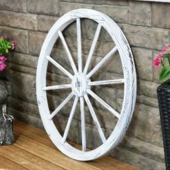 Give your backyard or garden a touch of the Old West with the Decorative Wooden Wagon Wheel from Sunnydaze Decor. Constructed of natural fir wood, this versatile piece of decor can be used both indoors and outdoors. It can also be placed leaning against a wall or fence; it can also be mounted to a wall for an eye-catching accent (please note, hanging hardware is not included with this item and must be purchased separately). The best part is that it already comes assembled, so you can place it in your preferred location right away. It’s perfect for decorating your home inside and out, so whether you want to place it in the front yard, or hang it up in your dining room, this decorative piece is sure to add a quaint touch.