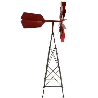 Add classic rustic charm to the garden, patio or yard with this metal farmhouse windmill garden statue. The handcrafted statue features vibrantly-colored blades and a classic steel decorative windmill construction. Due to the handmade rustic nature of the metal sculpture, when used outdoors, this statue will develop a natural patina over time and will show some weathering.