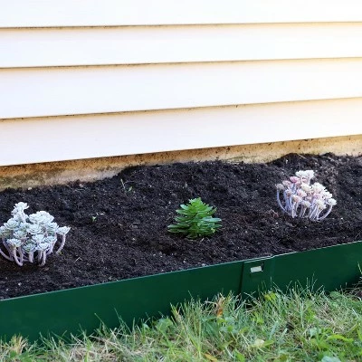 Beautifully edge your lawn, garden, or flower beds with this durable steel landscape edging. Featuring a sturdy and flexible steel construction, this edging allows you to easily create perfect borders along your landscape. These borders are cut in 42-inch sections with sturdy spikes to keep them securely placed in the ground. Each section locks into another with the easy locking system on both ends of the section. All pieces connect to create a 16.7-foot long edge.