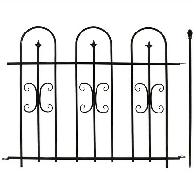 Make landscape features stand out on the lawn with this 2-Piece Decorative Finial Border Fence from Sunnydaze Decor. This fencing is easy to install with the included fence posts that go on each end and connect the two panels in the center. When installed together, the fence panels provide an overall fencing width of 6 feet. This fencing is also very durable as it is constructed of iron with an attractive black powder-coated finish for classic appeal. It is perfect for creating distinct borders between flowerbeds, lawns, shrubs, trees, bushes and other landscape features.