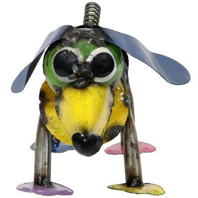 Add a touch of fun to the home or garden with this rustic metal yard art dog statue. This playful pup is made from heavy-duty metal and features a unique durable spring body. This small rustic metal art sculpture can be used either indoors or outdoors. It’s perfect for the living room, patio, lawn, or sunroom. If used outdoors, this rustic metal lawn art will develop a natural patina over time. Due to the statue’s hand-painted design, colors may vary.