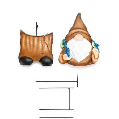 This whimsical and cute gnome is the perfect decorative touch for your garden. The St. Francis gnome features a brown cloak and hat and 3 blue birds on his arms. Prop the gnome up on the included stand. This unique accent piece will add a fun touch to your backyard patio, front porch, or amongst your flower gardens. 11-7/8″x1-3/4″x25-1/2″. Metal.