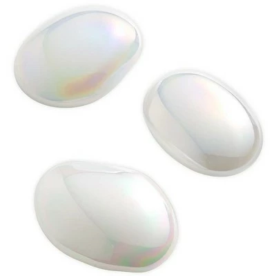 Placed in a garden, these hand-blown Organic Shaped Iridescent Glass Stones create a striking pop of soothing color among your outdoor elements. Each design varies in shape and size due to their handmade nature making each piece one-of-a-kind. What makes these decorative pieces so unique is the color process that includes iridescent finishes used to brighten the stones. These beautiful stones are for decorating gardens and pathways as an alternative to sea glass. Alternatively, they can hang as wall art indoors.